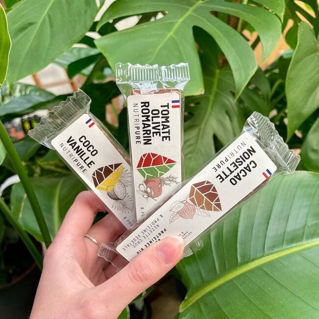 Nous travaillons avec une entreprise artisanale située dans le Sud de la France. Nous avons démarré le développement de nos barres en juillet 2018 avec un cahier des charges ambitieux : limiter le nombre d’ingrédients, obligatoirement bio, crus et avoir comme résultat final une barre qui soit bonne et qui contienne 20% de protéines. Nous avons fait plusieurs versions successives, avec différents ingrédients mais également différentes méthodes d’incorporation des ingrédients afin d’arriver à un résultat que l’on juge très satisfaisant !