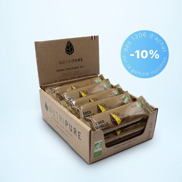 Les Raw Barres Bio de Nutripure sont des collations saines et gourmandes, parfaites pour un petit-déjeuner rapide, une collation, ou avant/après un effort d'endurance. Ces barres de 40g sont composées d'ingrédients bio, crus et naturels, offrant un excellent équilibre entre protéines, lipides, glucides et fibres.