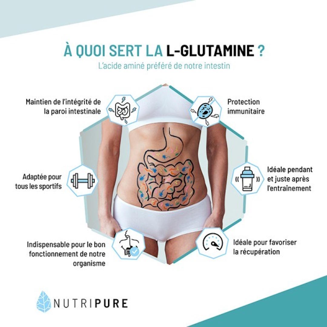 La pratique d'une activité physique régulière fait travailler le métabolisme beaucoup plus rapidement, ce qui dégrade le tissu musculaire et surtout la glutamine qu'ils contient. Dans ce contexte, il est primordial d'apporter un complément de glutamine à l'organisme afin d'éviter les carences et de synthétiser correctement ses protéines. Cela permet une bonne récupération et musculaire ainsi qu'une meilleure santé intestinale.