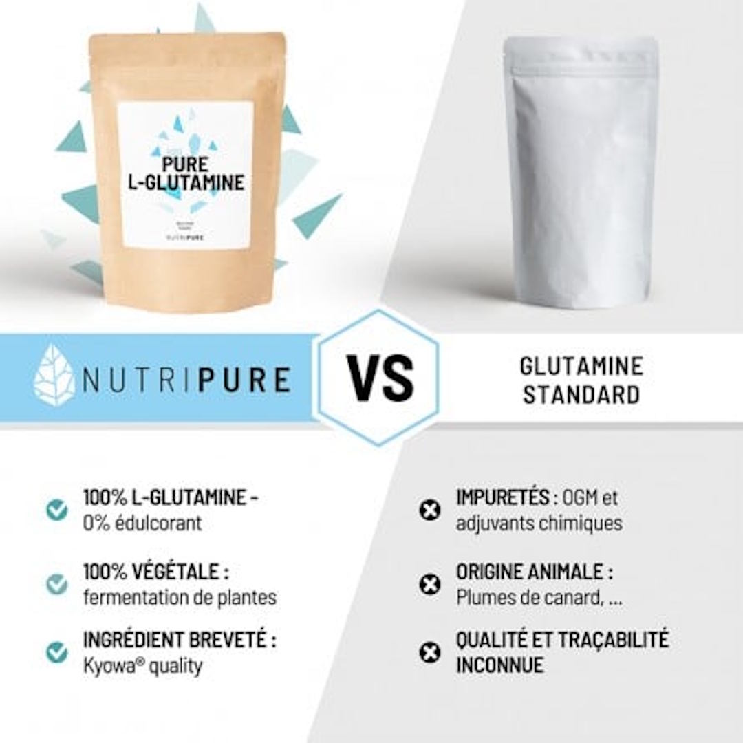 Choisissez une marque qui ne fait aucun compromis sur la qualité. Certaines glutamines peuvent être issue de plumes de canard ou comprendre des additifs chimiques comme des solvants, des conservateurs ou encore des colorants afin de faciliter la production, la conservation ou l'aspect.