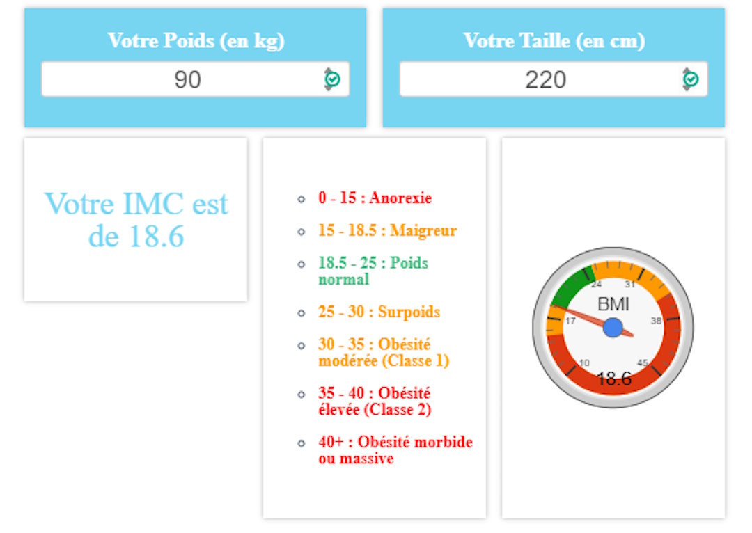 Nous verrons en fin d'article pourquoi il faut relativiser le résultat du calculateur d'IMC.