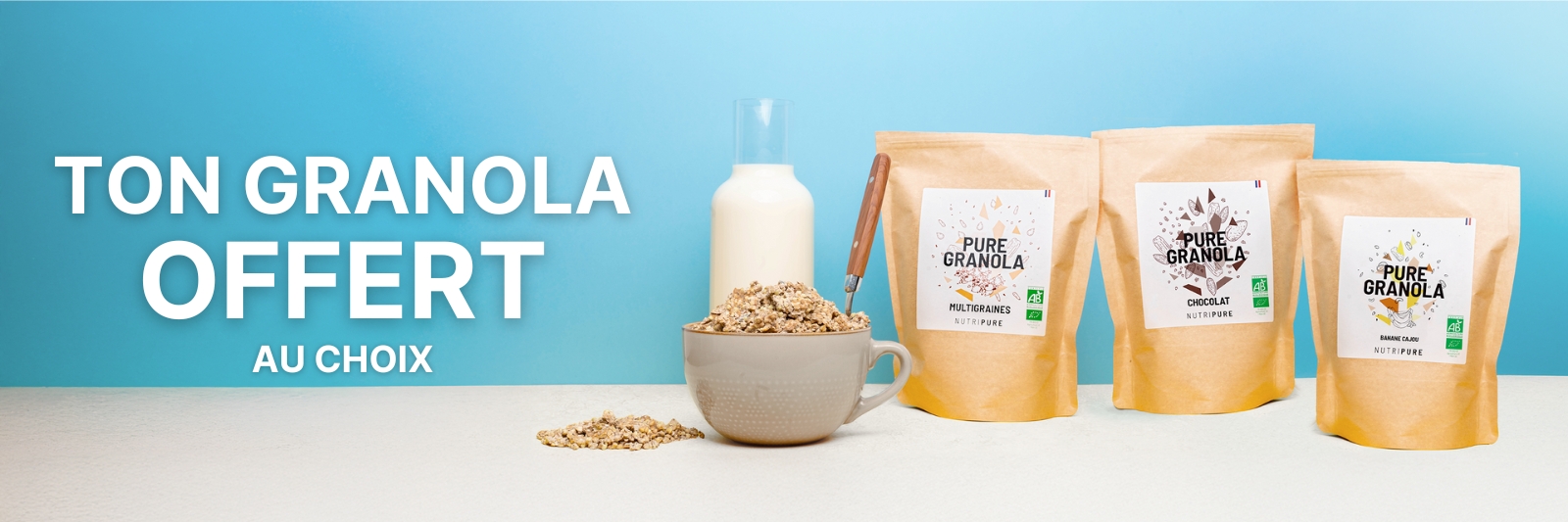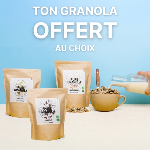 *Offre Nutrition Nutripure : profite d’un Granola offert au choix dès 80€ d’achat incluant au moins un complément de la gamme Nutrition (hors raw barre unitaire). Offre cumulable avec les autres offres en cours, dans la limite des stocks disponibles et valable jusqu’au 18 février 2025.