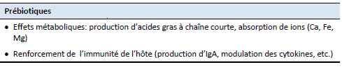 Tableau 2 : effets produits par l'interaction des prébiotiques avec le microbiote intestinal.