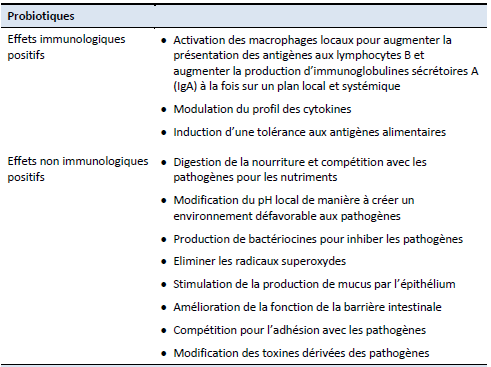 Tableau 1 : effets produits par l'interaction des probiotiques avec le microbiote intestinal.