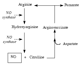 Cet acide aminé non essentiel permet la synthèse d'oxyde nitrique appelé aussi monoxyde d’azote. En effet, de façon physiologique, l’arginine est dégradée en citrulline + NO. Augmenter les taux de citrulline disponibles (notamment via une supplémentation orale) permet d’augmenter la quantité d’arginine disponible pour la formation de monoxyde d’azote. Celui-ci est indispensable au bon fonctionnement de l'organisme. Son augmentation permet notamment d’améliorer la santé vasculaire. (22)