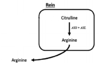 - La citrulline circule librement jusqu’aux reins qui transforment alors la citrulline en arginine.