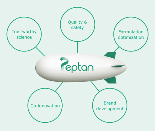 Le Peptan est un collagène peptides de type I. Cela signifie que les peptides sont identiques à ceux de nos os et de notre peau. Le Peptan est un produit pur contenant près de 97% de protéines (sur masse sèche). Leur forme hydrolysée rend les peptides hautement assimilables par l’organisme. C’est un ingrédient naturel, non allergénique.