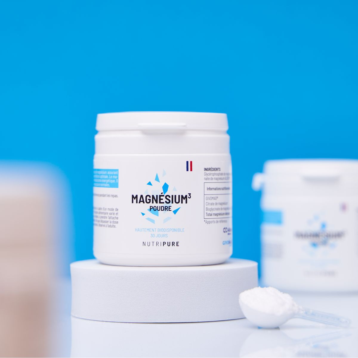 Notre Magnésium³ Poudre est complémentaire au Multivitamines Nutripure. Associés, il vous apporteront 96% de vos apports de référence (dose maximale autorisée en France) en termes de magnésium ainsi qu’une disponibilité pour l’organisme lissée sur la journée.
